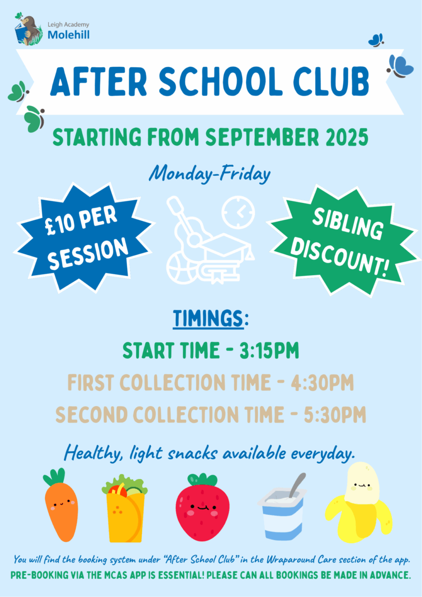 After School Club at Leigh Academy Molehill is open to all children from Reception to Year 6.